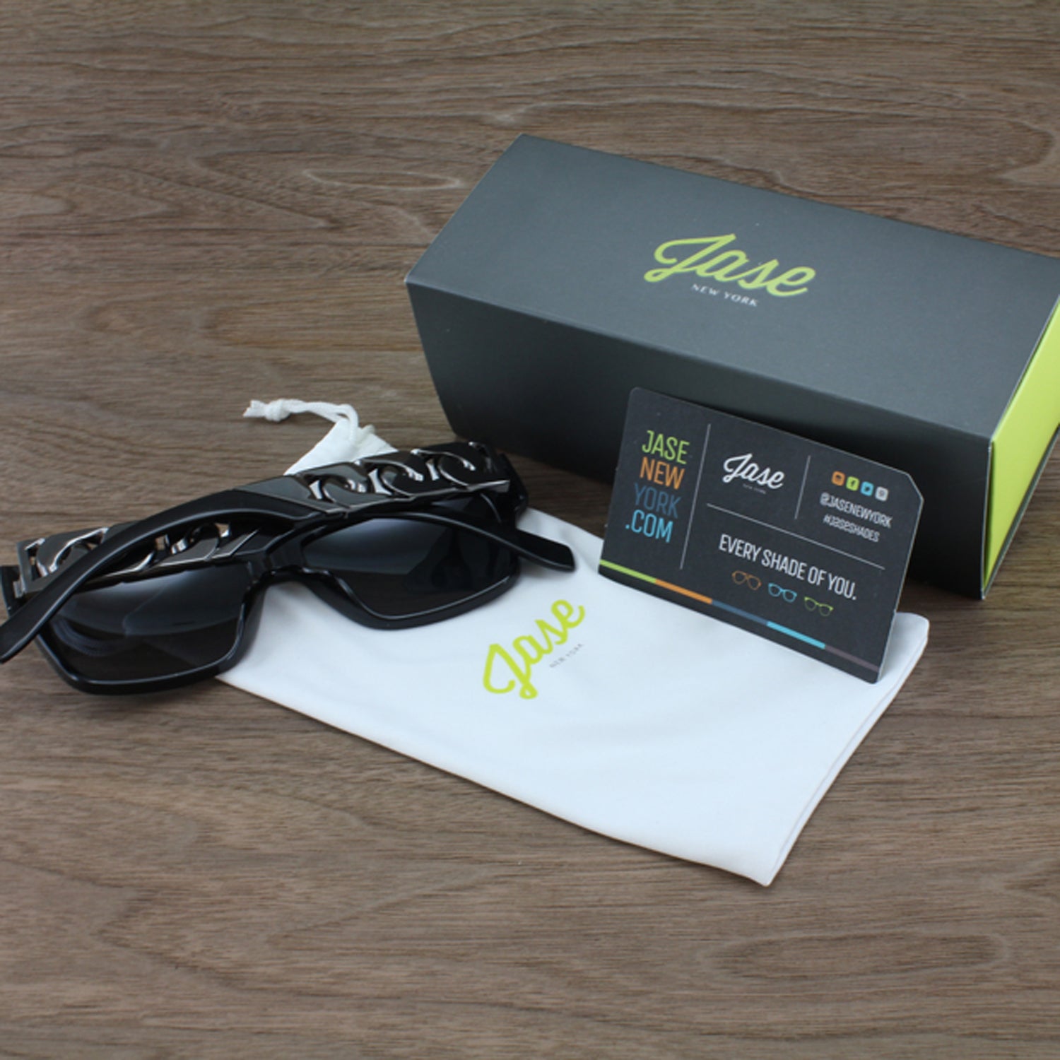 The Jase NY 'Cache' Flat-Top - Matte Black Frame with Gunmetal Cuban Link Temples